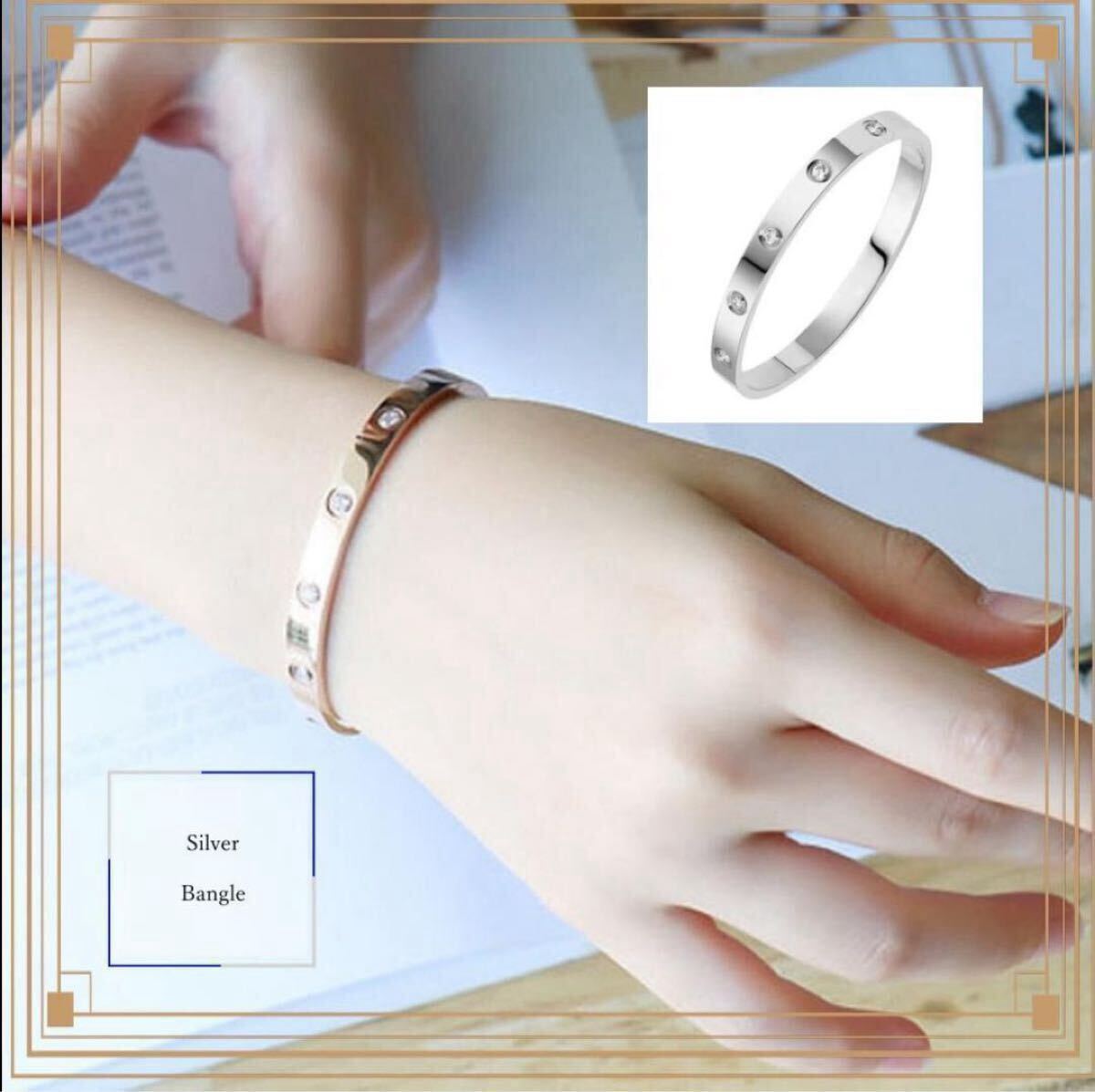 - シンプルに魅せる♪ラブブレス型バングル ブレスレット♪シルバーステンレスⅢ