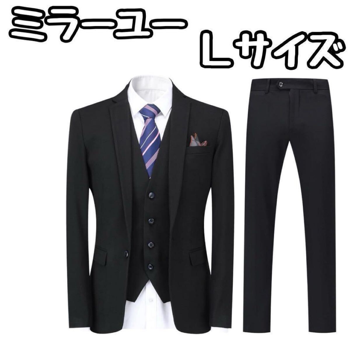 - [ミラーユー] メンズ スーツセット スリーピース スリム 一つボタン Lサイズ