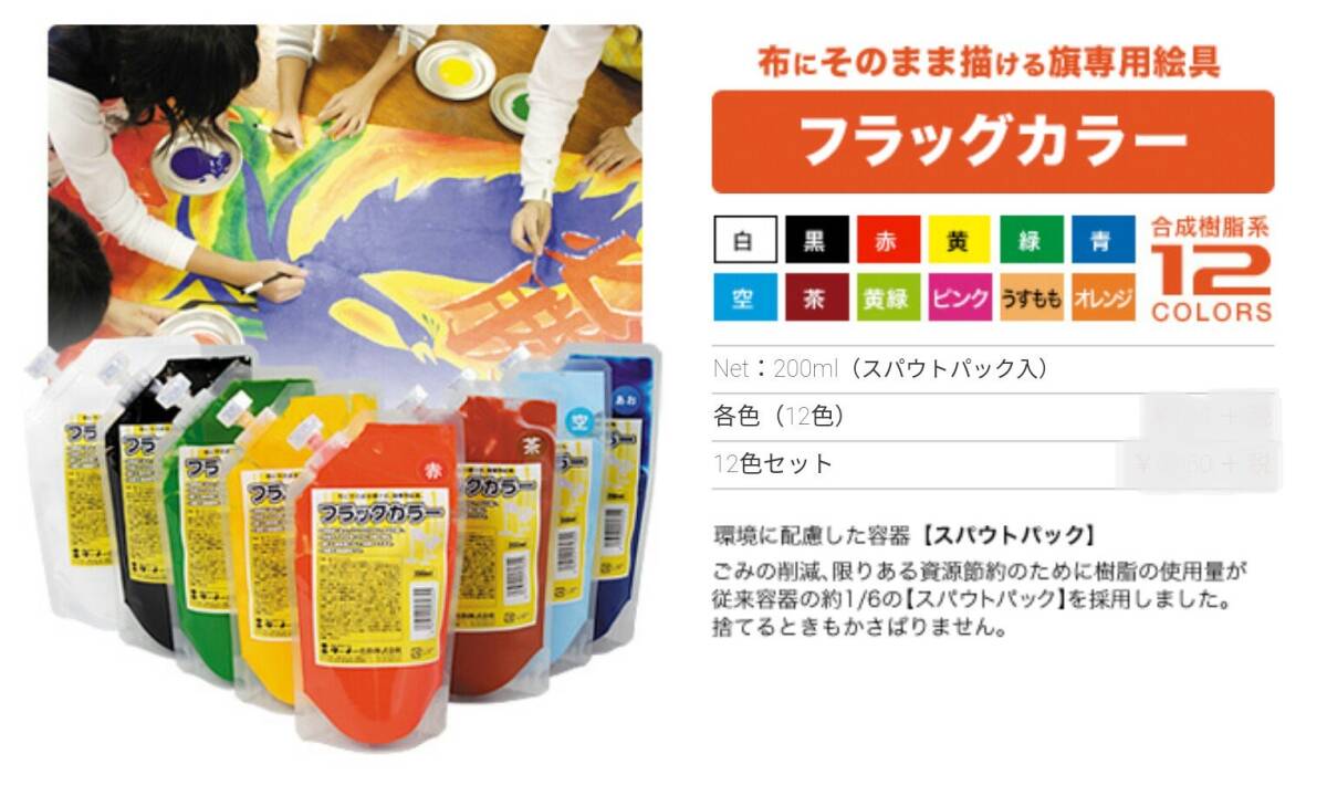 > 新品未開封品 7800円税別 ターナー色彩 フラッグカラー 単色 全12色 学級旗、垂れ幕、のぼり等便利な布にそのまま描けるアクリル絵の具