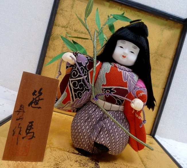 - (☆BM)昇山 作 笹馬 木目込み人形 ガラスケース入り 日本人形 童 男の子 縁起物 五月人形 節句 レトロ