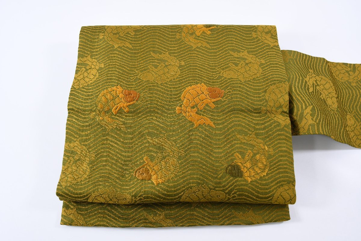 > 名古屋帯 アンティーク 鯛 魚 刺繍 帯丈332cm ★着物屋 ne-13192 桜庭呉服店