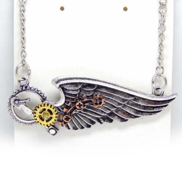 - 残り1点★新品★送料無料 アンティーク風 歯車×フェザー 格好良いコーデ メンズ ネックレス ペンダント アクセサリー 誕生日プレゼント
