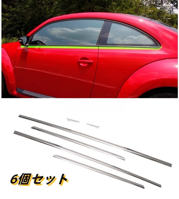 > 外装6個セット フォルクスワーゲン ザ・ビートル 2012-2020年 サイド ドアウィンドウ デコレーション フレームトリムカバー