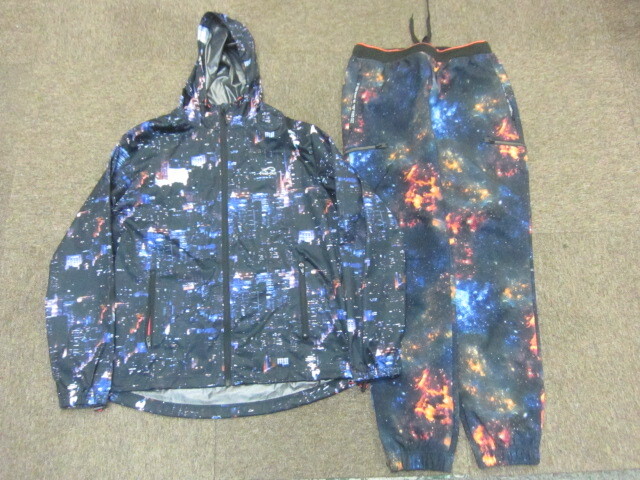 - ワークマン 総柄デザイン ワークウエア上下セット メンズL ネオン 宇宙柄ワークジャケット&ワークパンツ 作業着 ナイロンパーカー12079