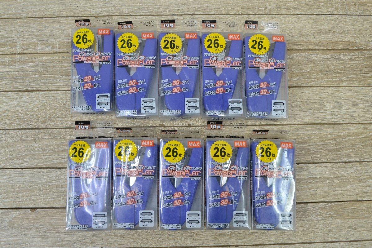 > C1723■長期保管 未使用品■MAX マックス■ホッチキス■パワーフラット HD-10DFL TYPE 10号 10個セット■26枚とじ■長さ(約)10.5㎝