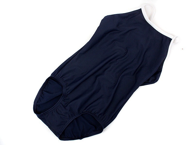 - コスプレ用 スクール水着風コスチューム 衣装 ワンピース水着風 白パイピングXネイビー Sサイズ