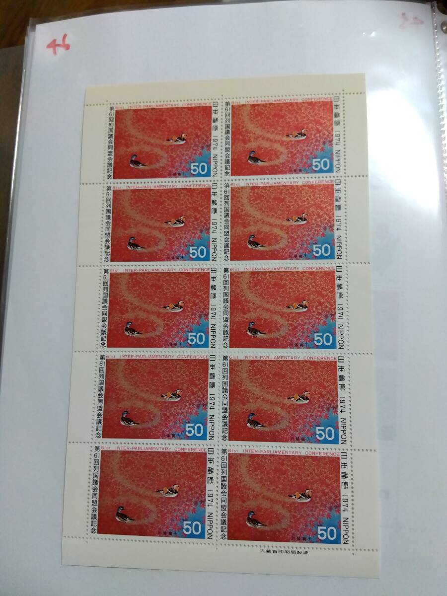 - .未使用切手 1974年 第61回列国議会同盟会議記念 50円シート シミあり