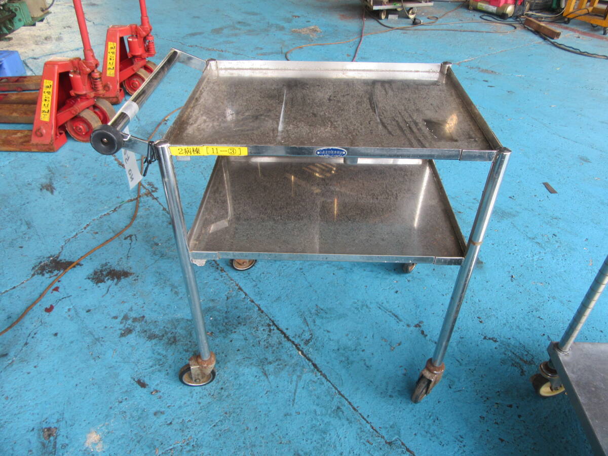 - 油谷 №5047 ステンレス 2段台車 手押し台車 工具ラック サイドテーブル キャスター付 台車 カート キャリア 手押 架台 移動台車 中古
