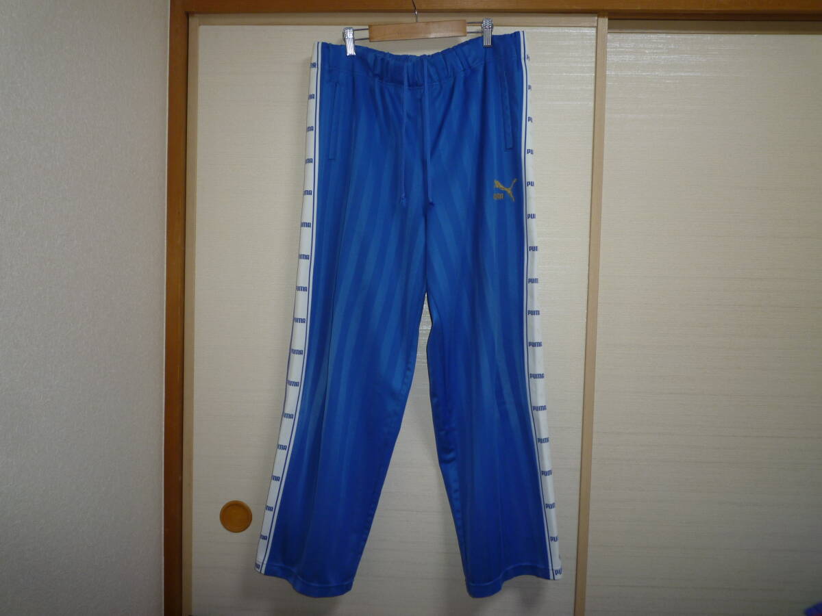 - プーマ シャドーストライプジャージパンツ 水色×金 Oサイズ 難あり品