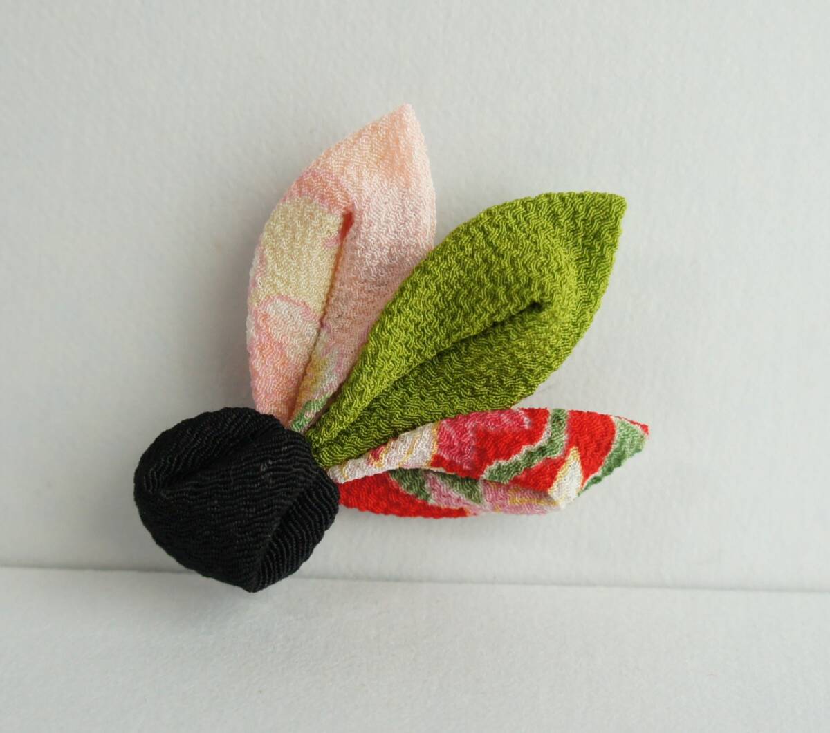 - ♪ ハンドメイド 羽根つきの 羽根 ブローチ ちりめん つまみ細工