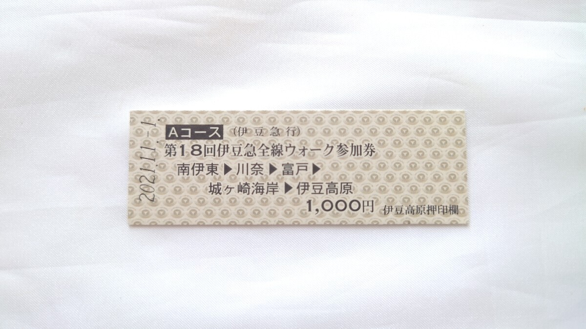 - ▲伊豆急行▲Aコース 第18回伊豆急全線ウォーク参加券▲D型硬券2021年