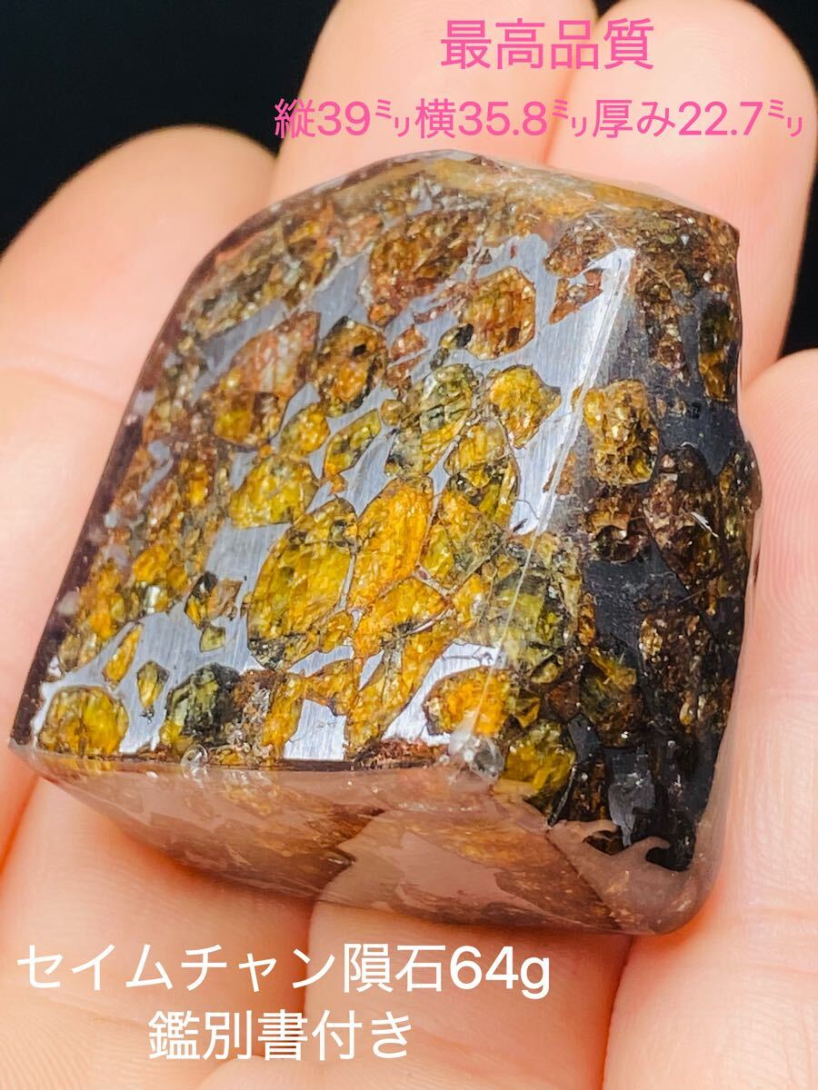 - 鑑別書付き セイムチャン パラサイト隕石 最高品質宝石クラス 御守り 金運アップ 宇宙パワー 隕石 石鉄隕石 メテオライト 64g