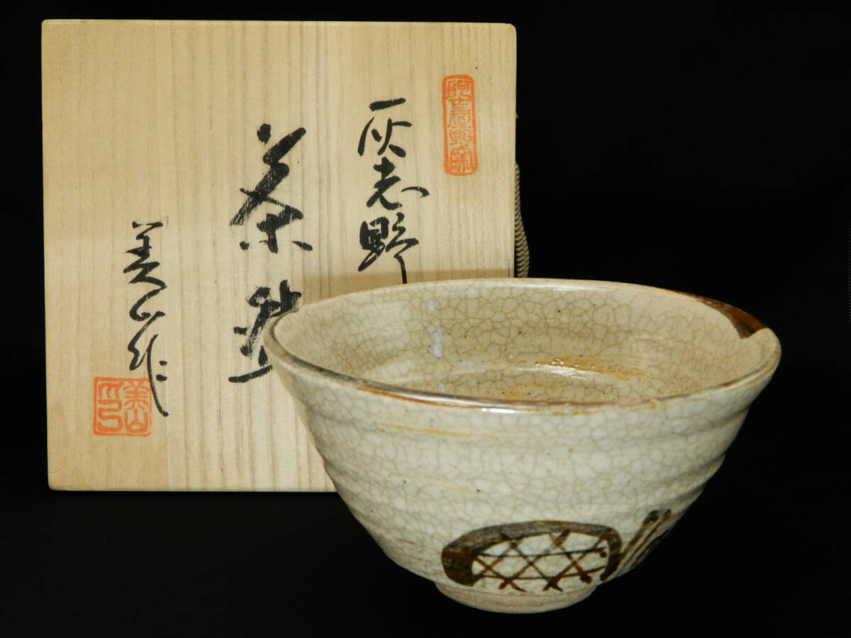 - 阿古屋野窯 灰志野 茶碗 寺田美山作 供箱 供布