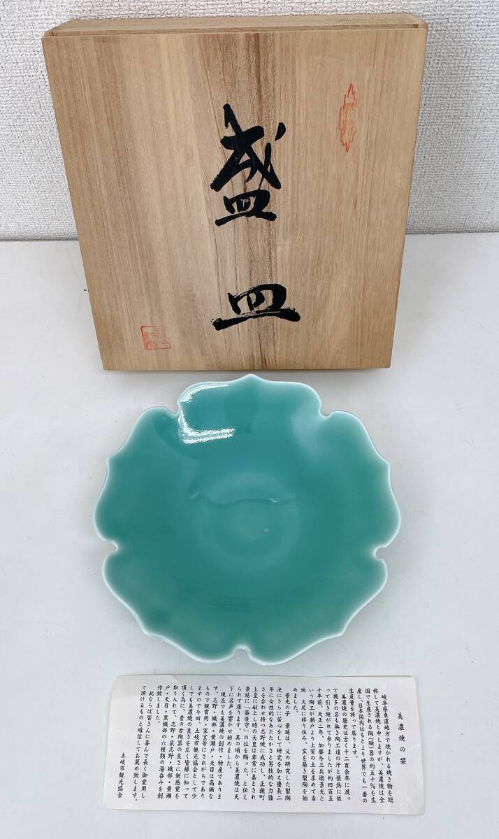 > 【陶磁器 美濃焼】盛皿/焼物/皿/食器/インテリア/キッチン/水色/共箱付/A611-436