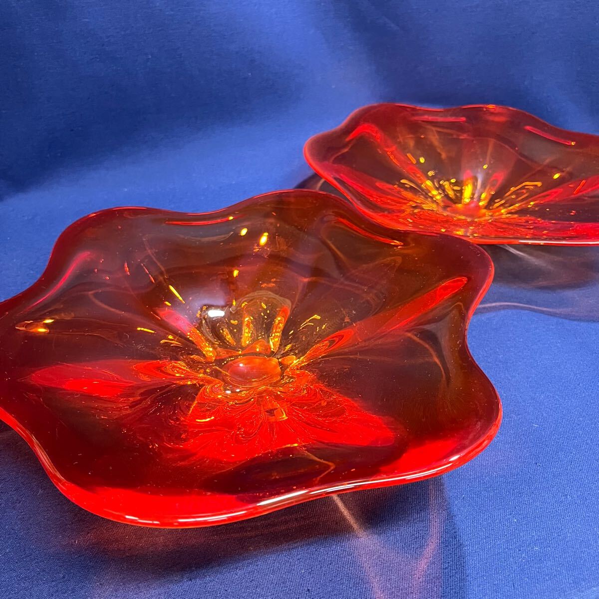 ヴィンテージ フラワーガラス フルーツ皿 2枚セット 直径35cm 盛皿 フラワーベース 花器 レトロ (12156並