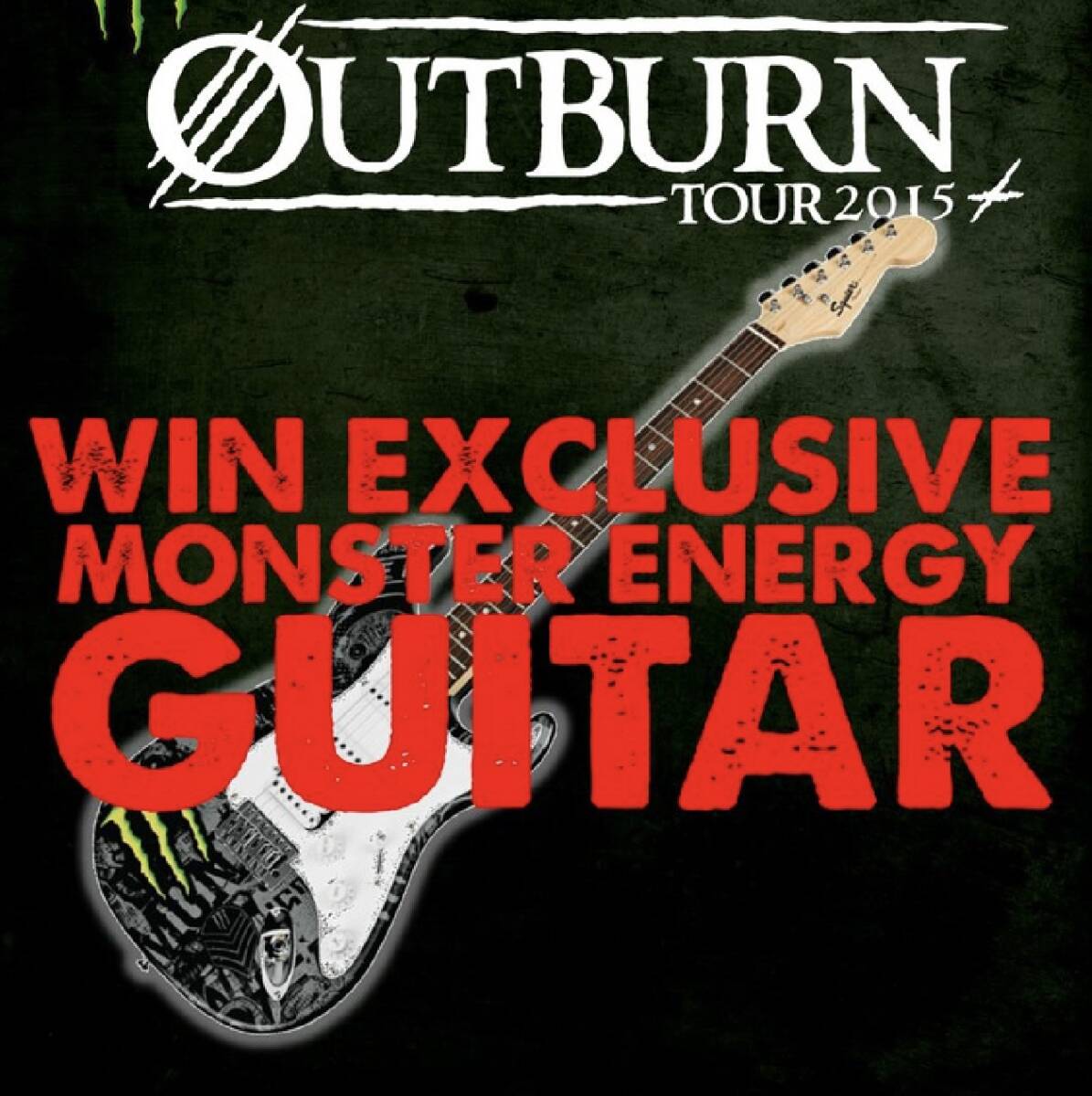 - 貴重なMonster ENERGY Fender Guitar OUTBURNツアーの限定サイン入りギター Fender Squier Stratocaster ギター