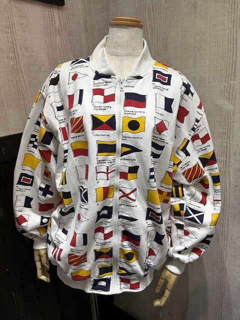 > 90s LAVON 手旗信号ハンド フラッグ シグナル プリント 総柄 フルジップ スウェット トレーナー ユニセックス 珍品 アメリカ古着