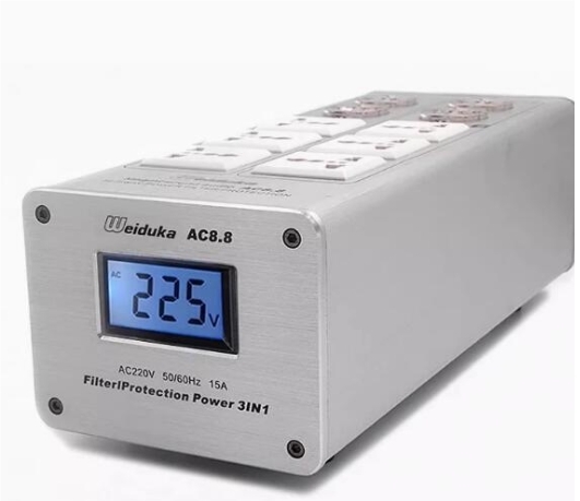 - 新品未使用 最強 液晶モニター付 10口 高級オーディオ専用電源タップ シルバー