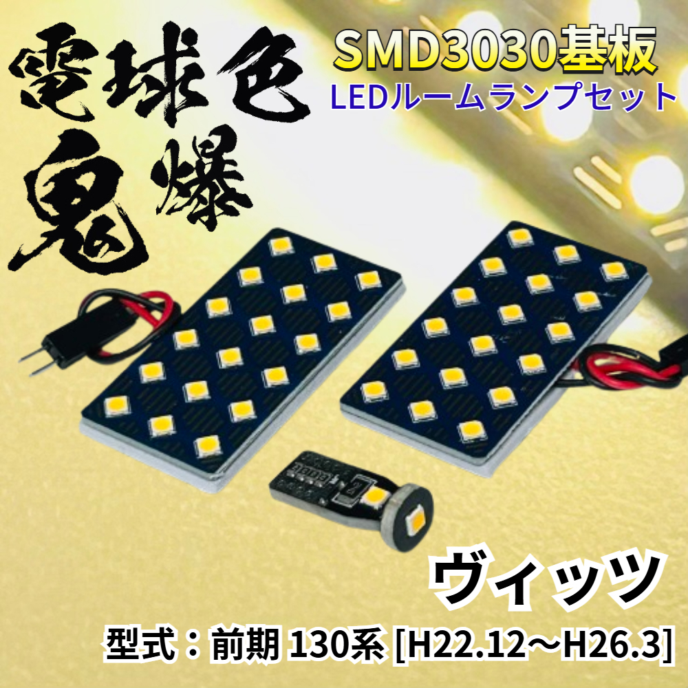 - 【電球色】ヴィッツ 前期 130系 適合 鬼爆基板 3030SMD LED ルームランプ セット 車内灯 室内灯 パーツ アクセサリ 読書灯