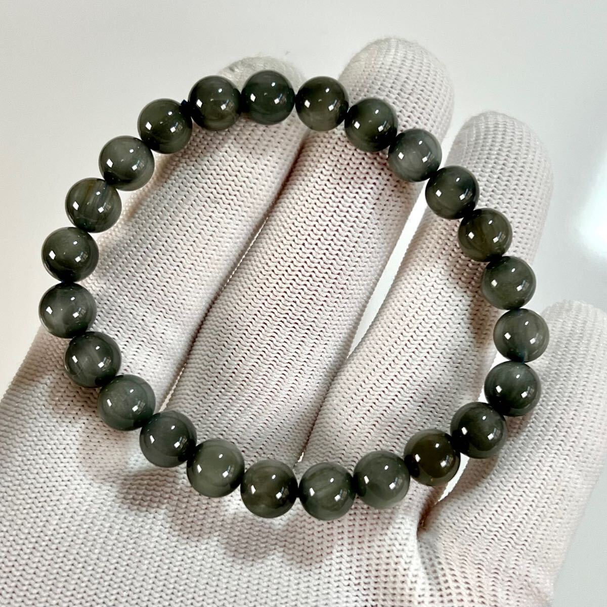 - 高品質 グレーファイバラスブレスレット 針が柔らかい キャッツアイあり 5 ルチルクォーツ