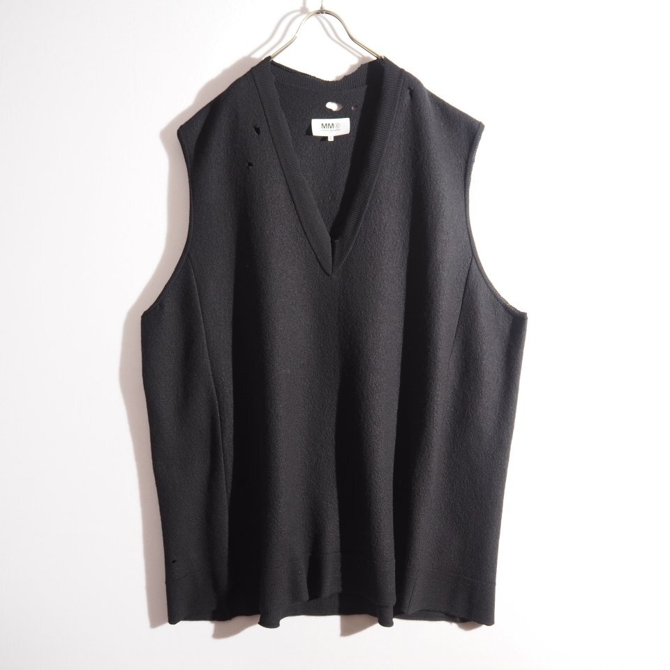 > C3477P▼MM6 Maison Margiela メゾンマルジェラ▼23AW Midi Dress 1 ダメージ加工 ビッグ ニットベスト ブラック / S52DD0014 秋冬 rb mks
