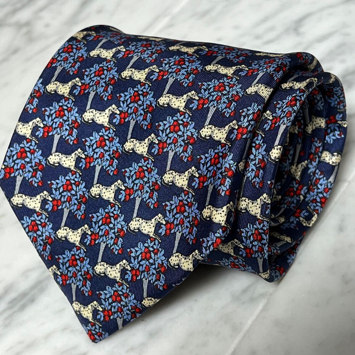 - 999円~ LANCEL ネクタイ ネイビー ボタニカル柄 犬 総柄 (B11)