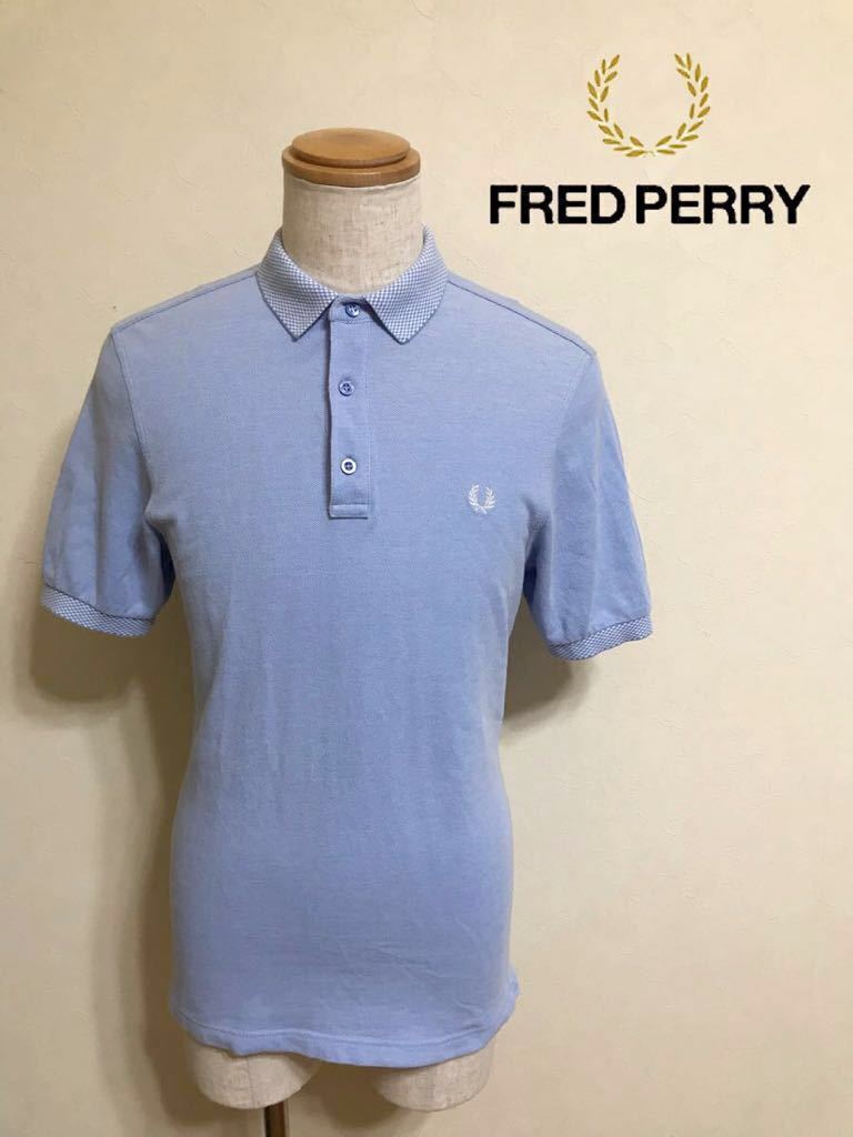 - FRED PERRY フレッドペリー スリムフィット 鹿の子 ポロシャツ トップス 半袖 サイズM ライトブルー