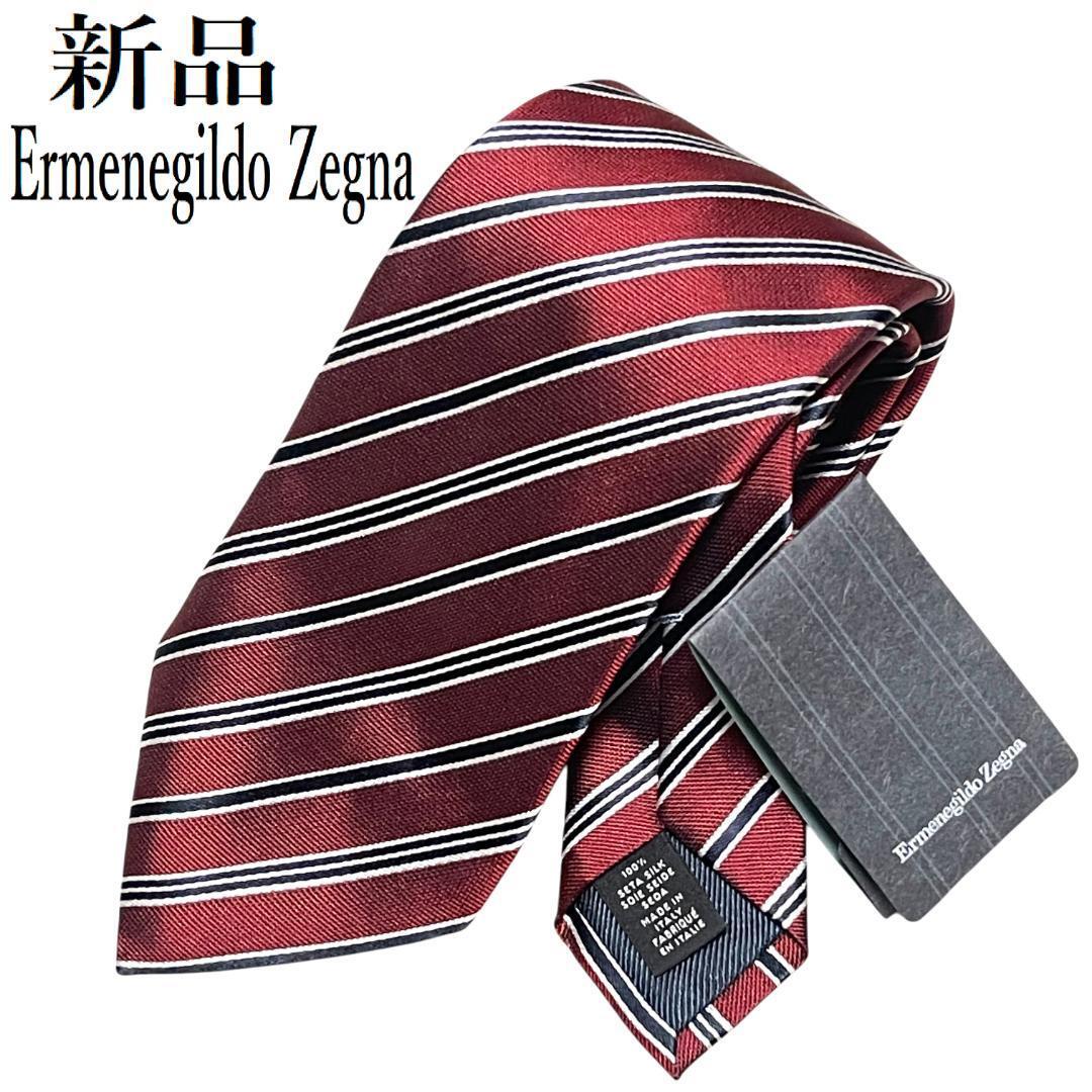 - 【新品】Ermenegildo Zegna ゼニア ネクタイ レジメンタルタイ 赤茶系 レッド ブラウン シルバー ドレス ビジネス
