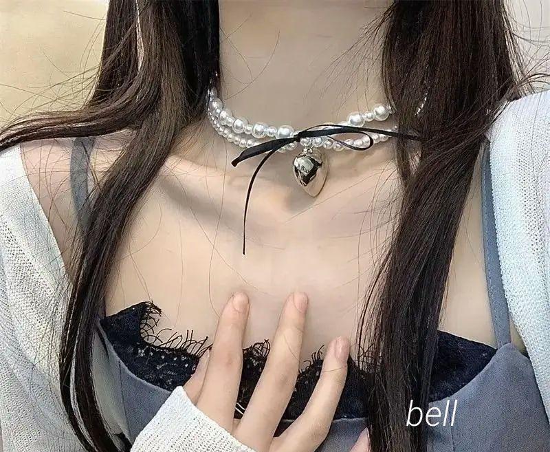 - ラスト1点 チョーカー ブラック パール ネックレス リボン ハート 韓国