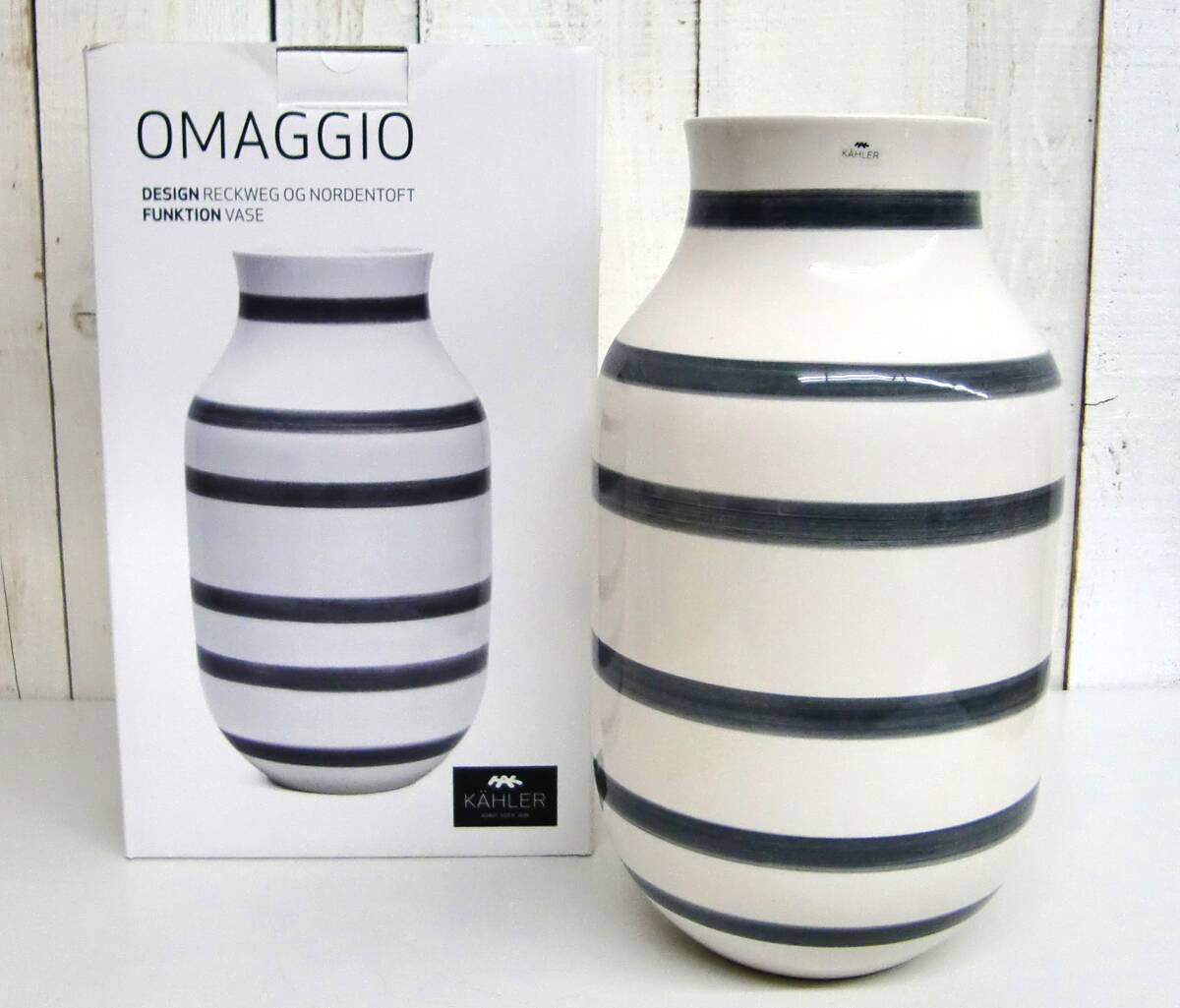 - アンティーク *KAHLER OMAGGIO *ケーラーオマジオ *花瓶 花器 モダン*ブルーボーダー *元箱付き *DESIGN ROCKWEG OG NORD ENTOFT