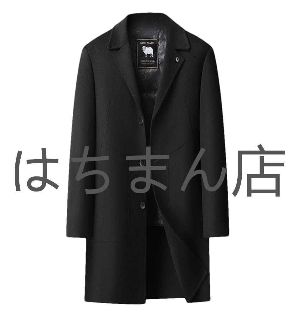 - ウールコート テーラードジャケット メンズ ダウンライナー ライナー着脱式 ロングコート 冬コート 防寒着 紳士 通勤 ブラック M-4XL