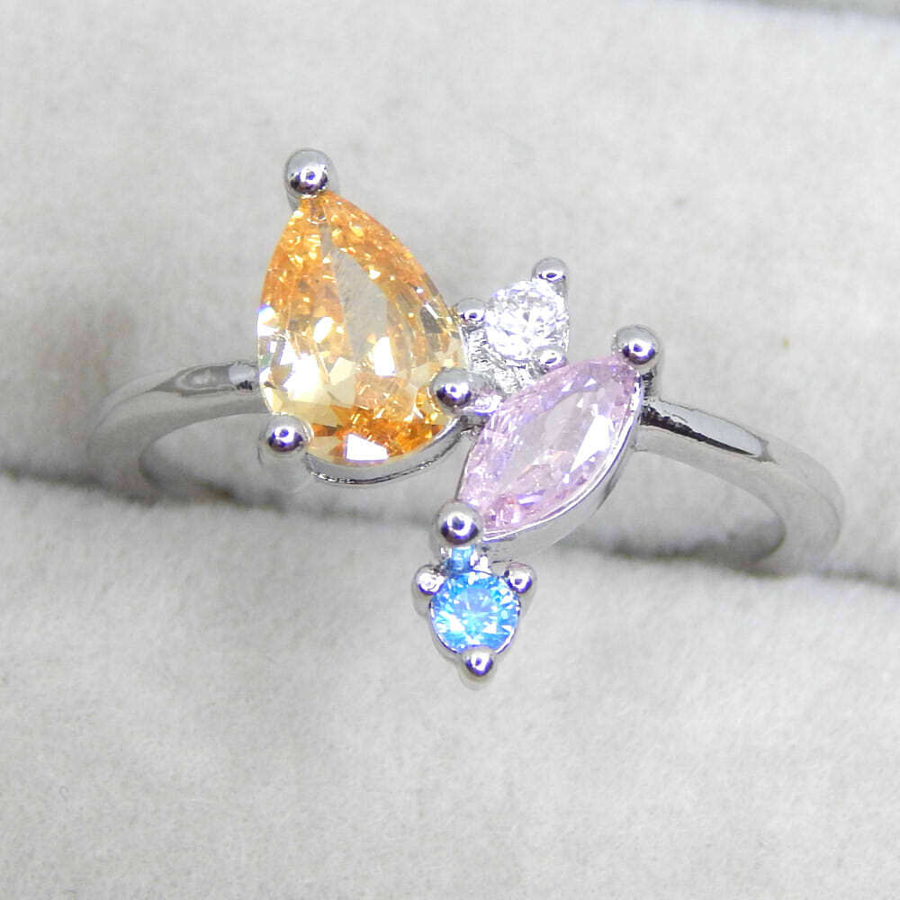 - 新品★訳有品 XR-C21 淡色 マルチカラー CZダイヤモンドリング 指輪 フリーサイズ レディース アクセサリー ジルコニア シルバー