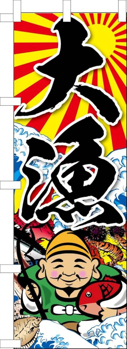 - のぼり旗「大漁旗 A 真鯛 えびす様 新鮮魚介 のぼり 商売繁盛 千客万来 北海道 お持ち帰り 幟旗 大漁祭 海の幸 寿司 刺身」送料360円