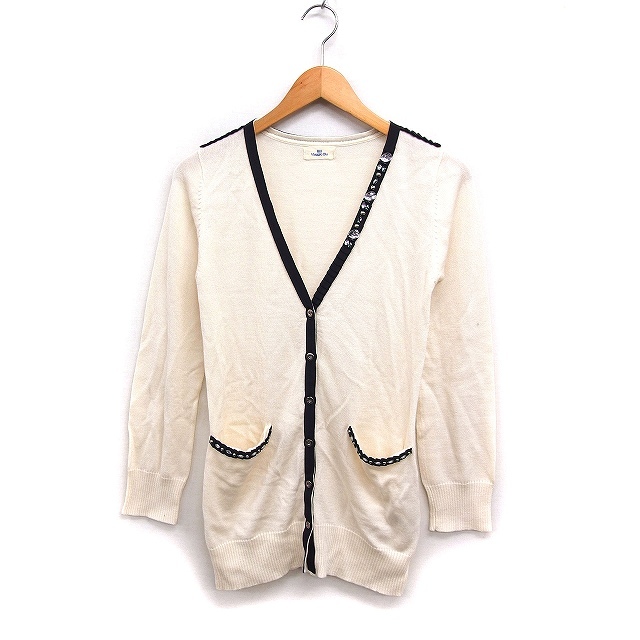 - ビアッジョブルー Viaggio Blu ニット Vネック カーディガン ビジュー バイカラー ウール混 2 アイボリー /FT40 レディース