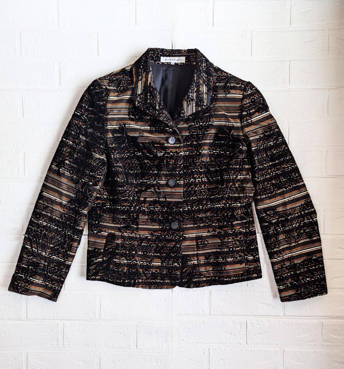 - 2-3回使用のみ【極美品】DANA PARIS ダナパリ ジャケット 上着 サイズ44 15-17号 ベロア生地デザイン柄 上品 高級感 上質 希少 マダム