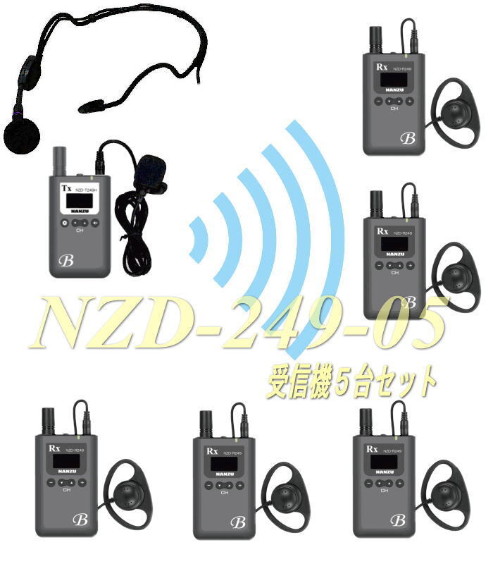 - 音声ガイドイヤホン5台セット NZD-249ー5 ビーガイドPLUS 無線送信機&受信機