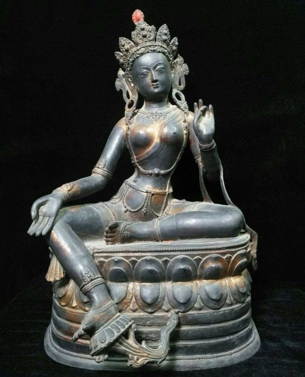 > 旧蔵 清 大判仏像-高さ53 cm紫銅 泥金朱砂底 【緑度母菩薩】仏像 奉納されていた 供養品 銅製 極細工 古美術 古美味 212-27