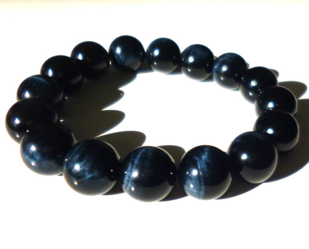 - ☆幸運☆仕事運☆成功運☆高品質AAA☆ホークスアイ☆鷹目石☆ ☆天然ブルータイガーアイ☆ ☆大珠12.5mm☆ ☆16.5cm☆