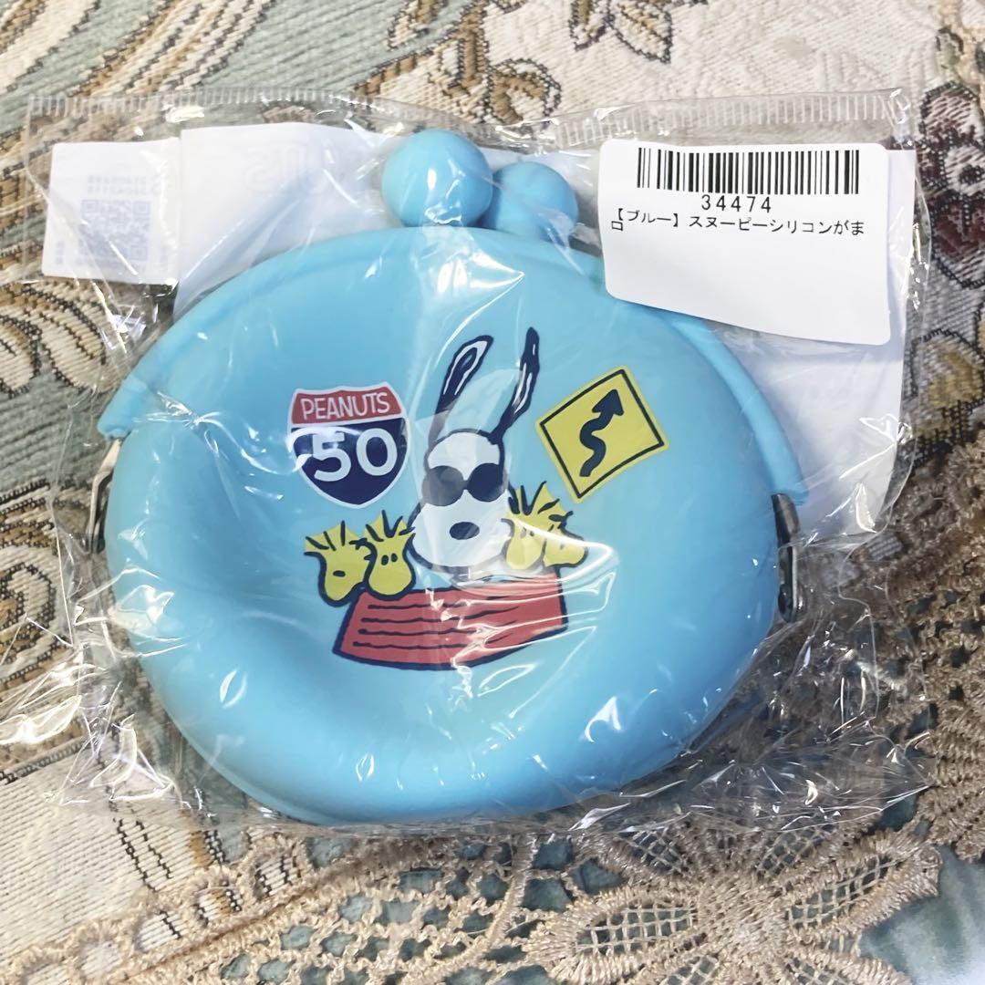 - スヌーピー シリコンがま口 小銭入れ おやつポーチ ブルー