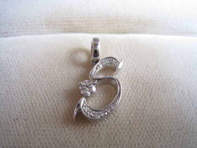 - [SAMU]極美品!!イニシャルS 輝きダイヤモンド0.20ct k18WGホワイトゴールドペンダント !