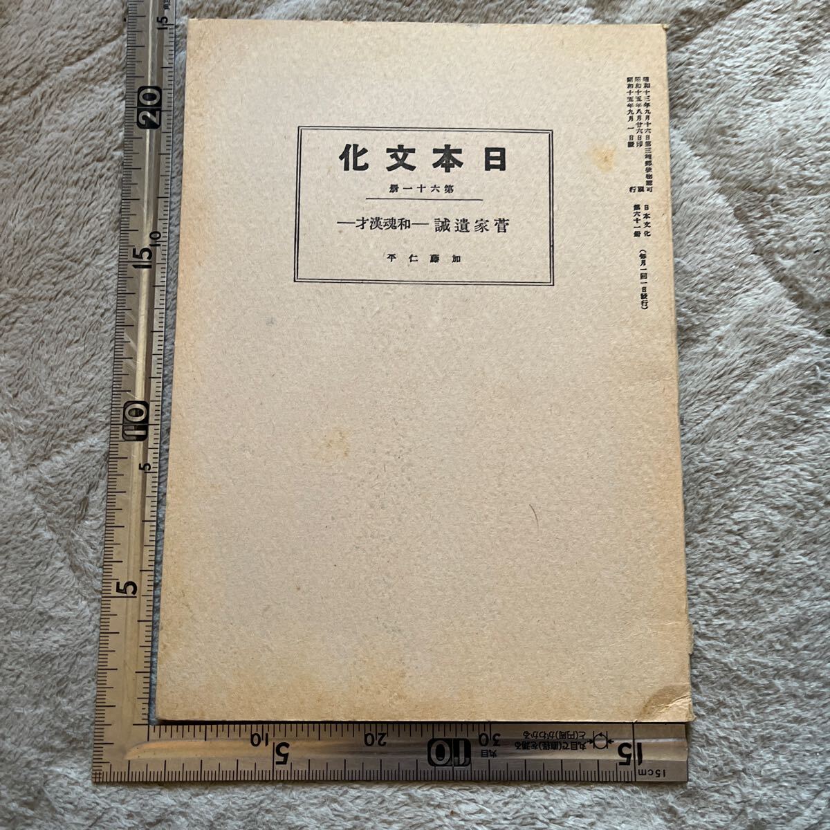 - 戦時下『日本文化』第61册「菅家遺誡 和魂漢才」加藤仁平著/日本文化協会/昭和15年