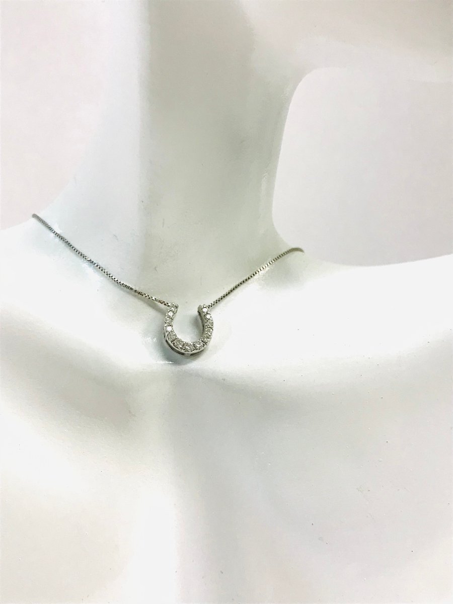 - qoj.YUG19 K10WG ホワイトゴールド 馬蹄 メレダイヤ ネックレス D0.20 イタリー製