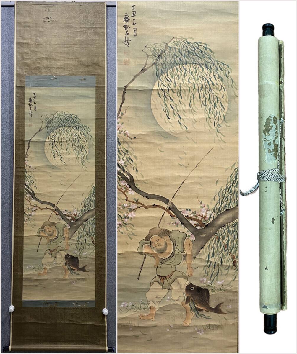 - 古美術 掛け軸 中国・清時代 「黄慎書」 絹本 【漁夫図】 立軸 書道 巻き物 肉筆保証 唐物 古画 画心128X43cm LT-2412227