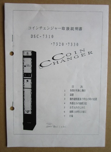 - ※※ ダイイチ コインチェンジャー DSC-7310・7320・7330 取扱説明書 倉庫整理で出て来た中古品です。