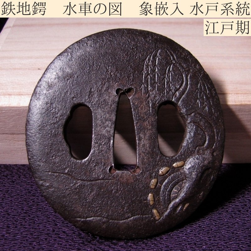 - 時代武具 鉄地鍔 水戸系統 象嵌 水車の図 江戸時代/鐔/24L053