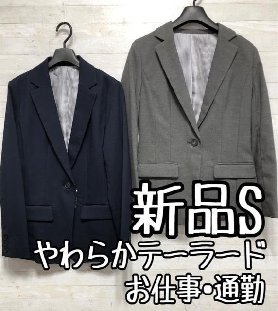 - 新品☆S♪紺&グレー系♪ストライプ柄裏地付やわらかジャケット2枚〇B867