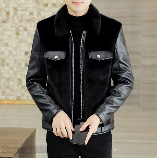 > ライダース ♪上質新品 メンズ ファージャケット 厚手 毛皮 フェイクファー 紳士 バイクウェア 秋冬 アウター サイズ選択可 /2XL