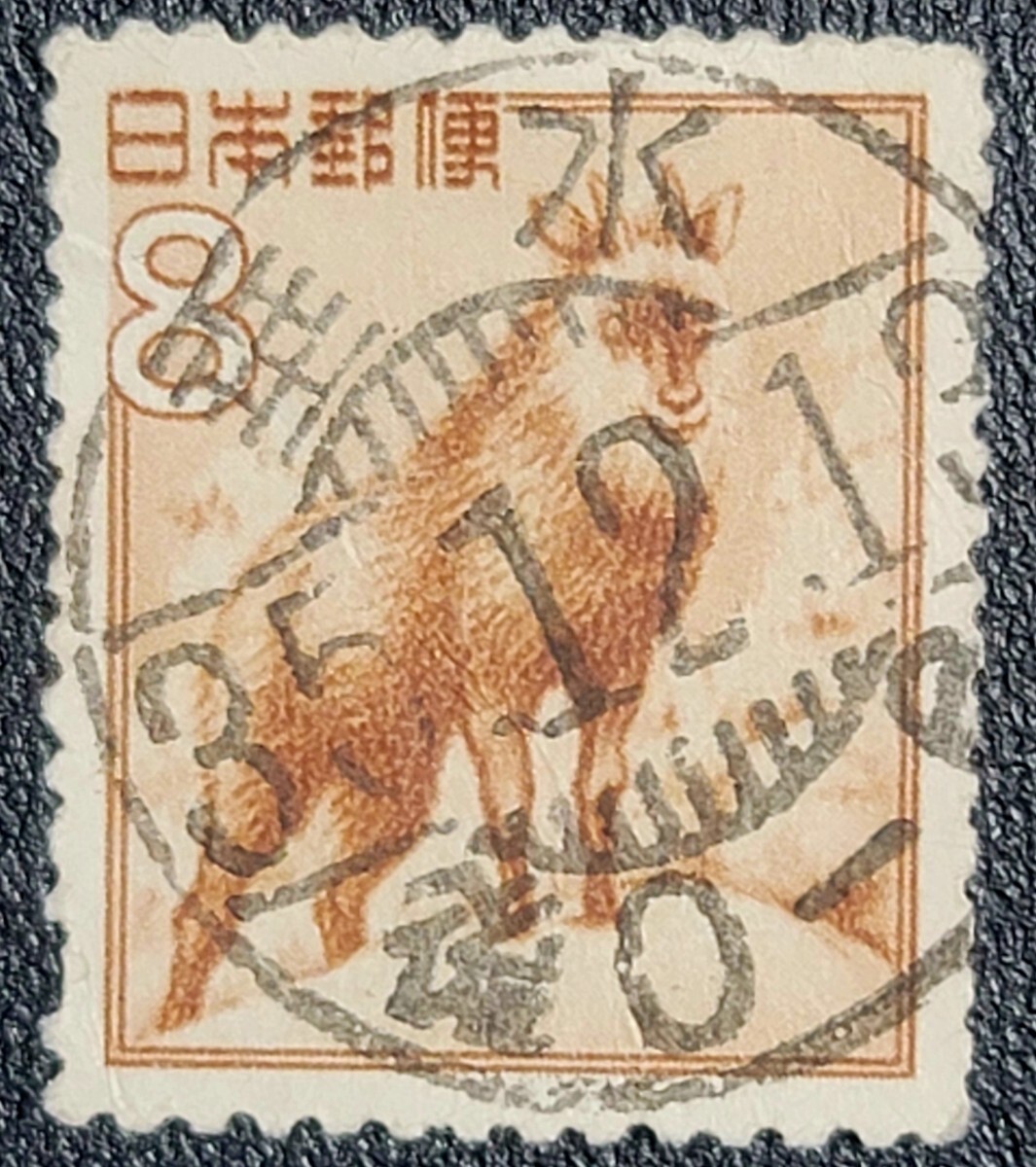 - [おまとめ・同梱歓迎] 満月印 切手 8円/カモシカ 兵庫県 垂水 35.12.13 / 櫛型印