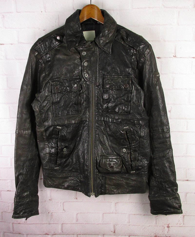 > LFJ26051 DIESEL ディーゼル レザー シングルライダース ジャケット ブラック系 S