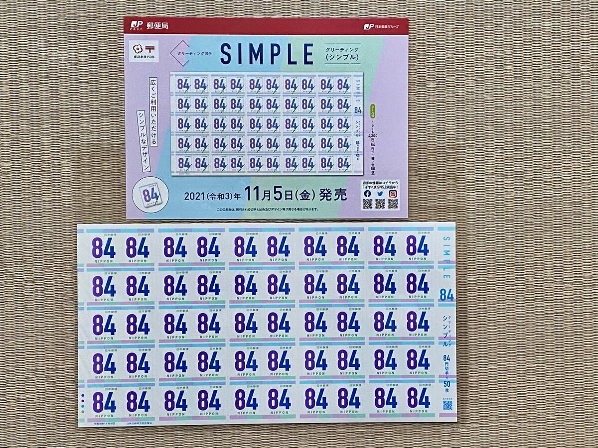 - グリーティング切手シート シンプル 84円 解説書(リーフレット)付き 2021年 令和3年